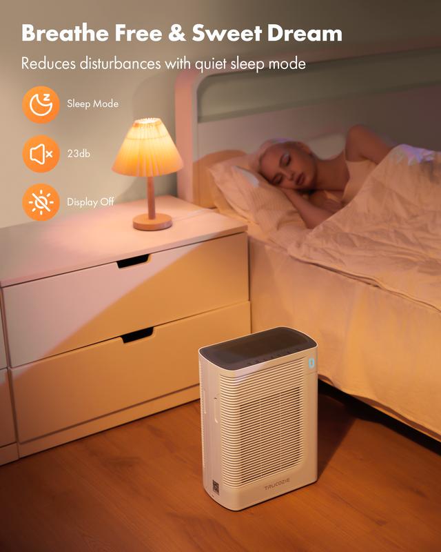 Trucozie Air Purifier for Home Large Room Bedroom Up to 1937 Ft² in 1 Hr With Double-sided Air Inlet, Air Quality and Light Sensors, HEPA Sleep Mode for Allergies, Dust, Pollen, Pet Hair